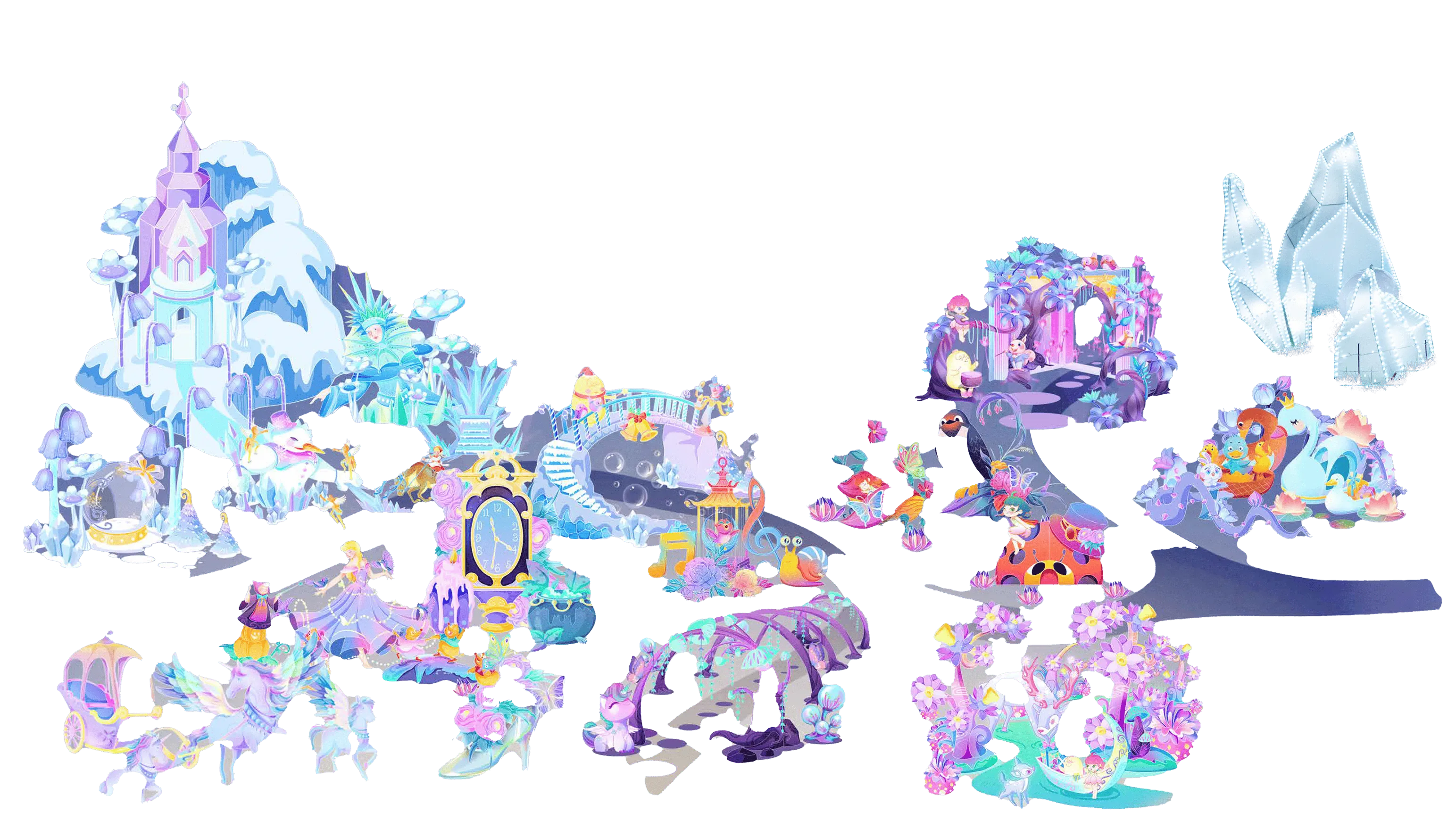 Get mesmerized as you journey through the Castle in the Sky, pass through glowing clouds of snow, and glide into a snow-white fairytale of ice and magic.